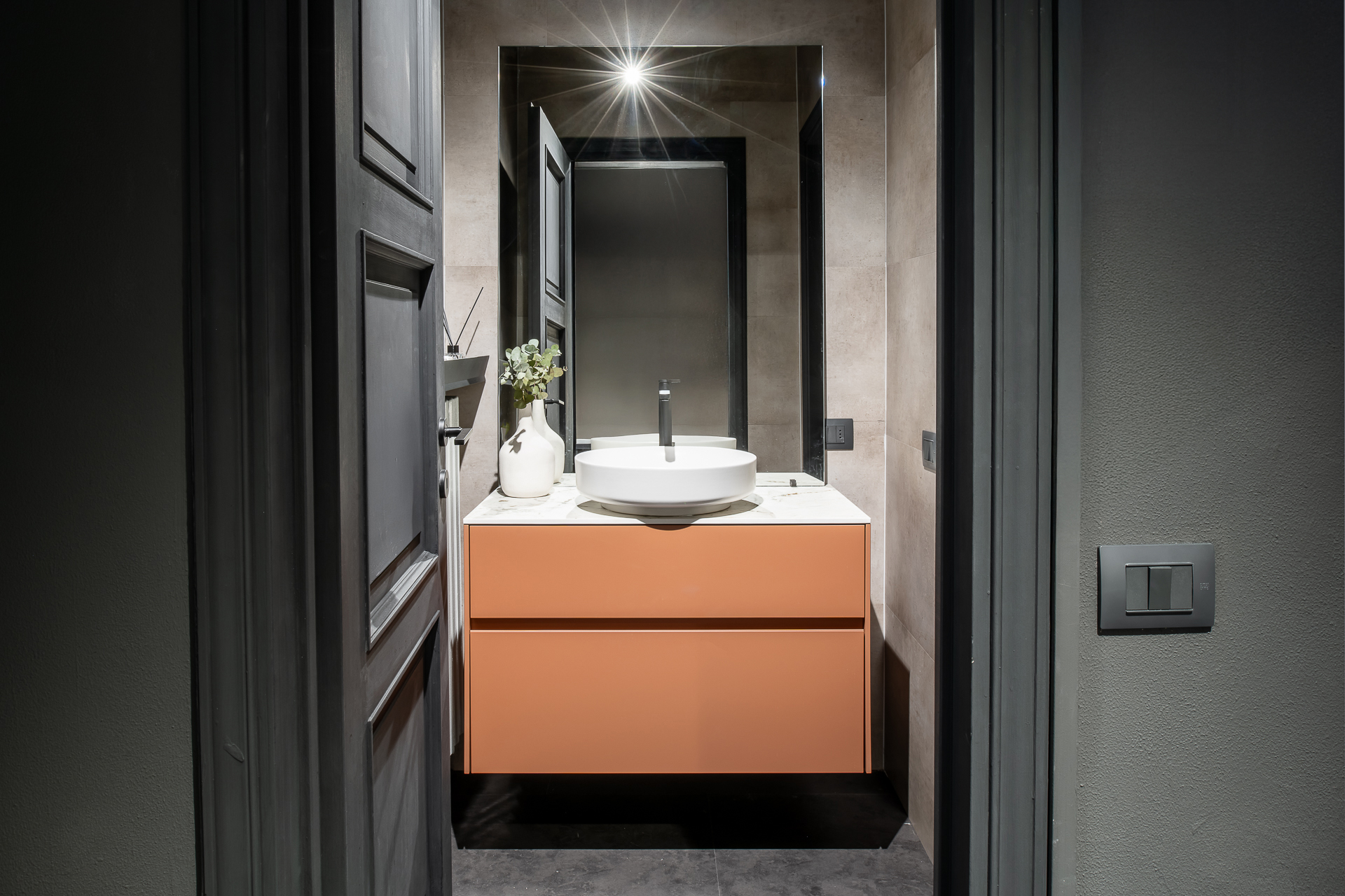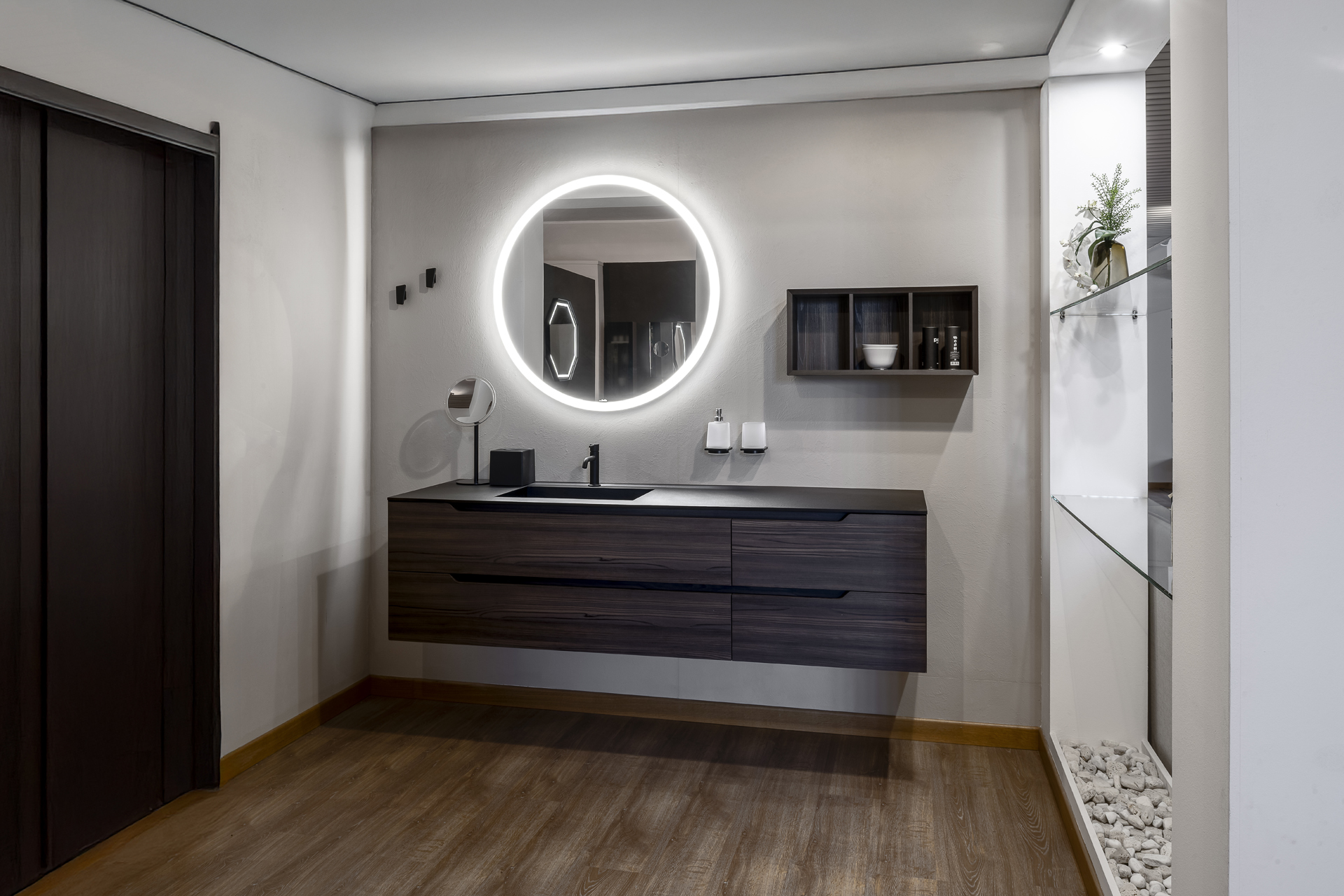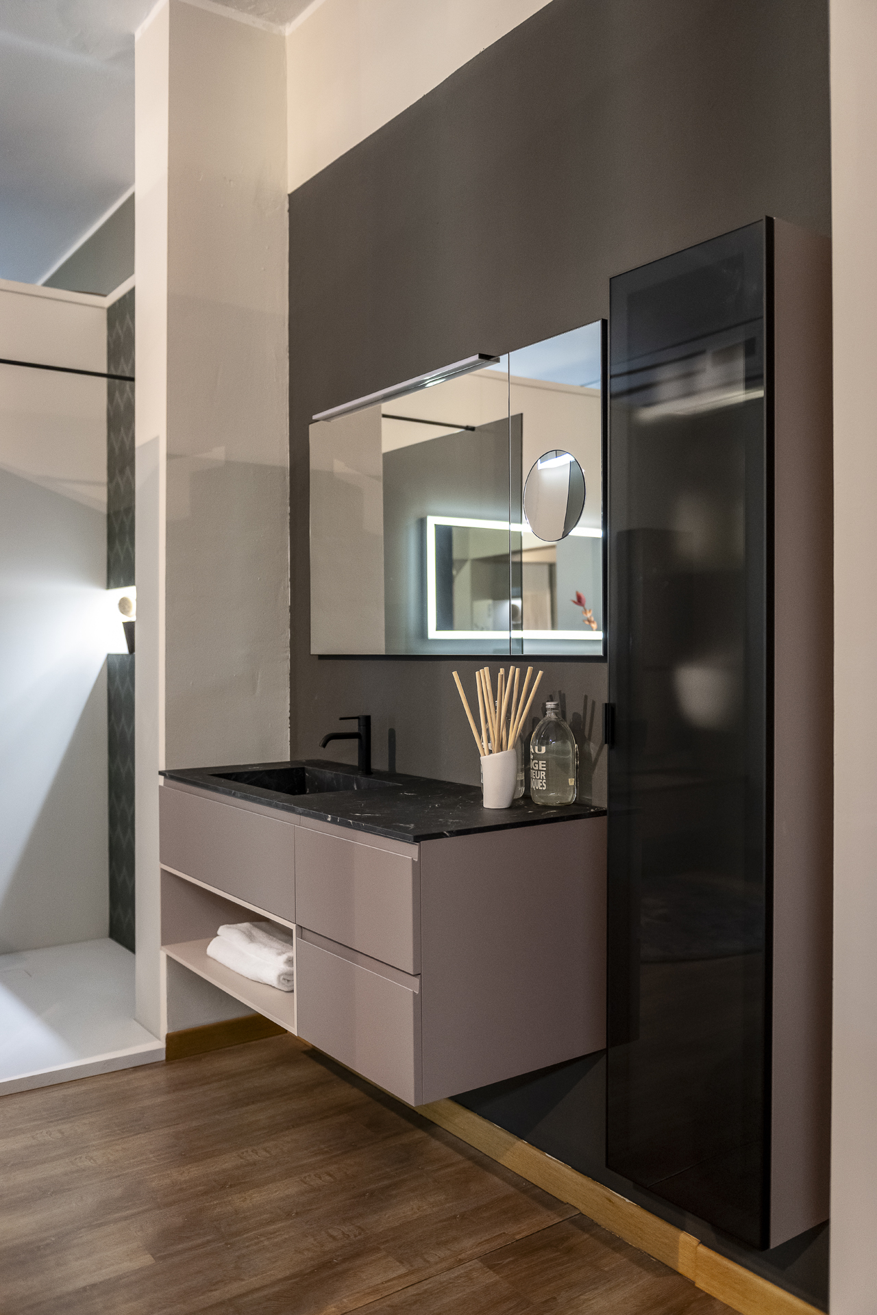 Negli ultimi anni la stanza da bagno è diventata uno spazio della casa sempre più prezioso, in cui è piacevole prepararsi la mattina per svolgere le attività quotidiane e ritirarsi, rincasando, per prendersi cura di sé e del proprio benessere. Con i consulenti d’arredo di Misura Casa, potrai creare la sala da bagno dei tuoi sogni, scegliendo ogni minimo particolare in base alle tue esigenze familiari, di stile e di spazio. I nostri mobili da bagno componibili sospesi e a terra sono disponibili in diverse composizioni e materiali (dalla fibra di legno al laccato), sono adattabili a qualsiasi metratura. Devi arredare la zona lavanderia? Da noi trovi a tua disposizione, pratiche soluzioni con lavatoi e porta-lavatrici. Per aumentare le tue possibilità di scelta, abbiamo in catalogo una linea di lavabi da appoggio in ceramica, a incasso, sospesi dal gusto raffinato, ideali per arredare case moderne e di design. I Box doccia che proponiamo, a parete, ad angolo, a nicchia, garantiscono una precisione estetica e funzionale senza precedenti e sono realizzabili su misura con tecnologie innovative. E infine, gli accessori che non possono assolutamente mancare in un bagno: appendiabiti, mensole modulari e componibili, dispenser, porta asciugamani, porta rotolo, porta spazzolino, porta scopino, pensili a giorno e specchiere contenitore con anta a ribalta. O, ancora, innovativi specchi contenitori a incasso con casse e Bluetooth, accessoriabili con portaoggetti e portasciugamani in metallo laccato. Tutto quello che serve, insomma, a rendere il bagno la tua stanza di casa preferita.
